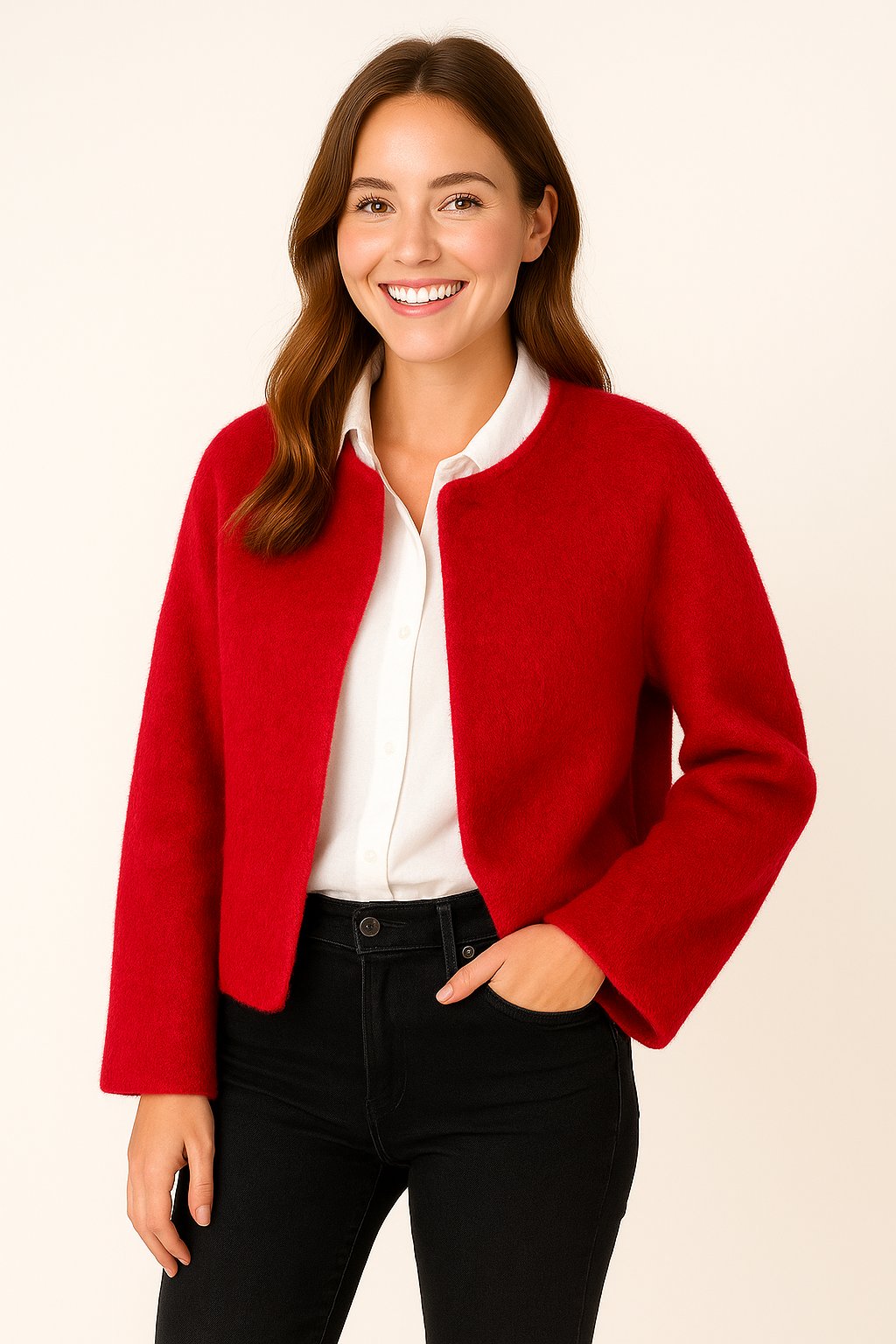 - Tijdloos silhouet – ronde hals, lange mouwen en een rechte snit voor een elegante uitstraling